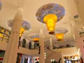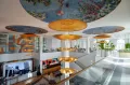 Полюбуйтесь авторскими плафонами-полусферами, которые закреплены на металлическом каркасе диаметром 6 метров и вручную расписаны под мозаику в ярком стиле: голубое небо и сочные фрукты создают атмосферу летнего изобилия.